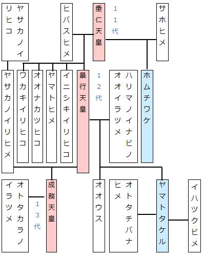 ヤマトタケル、 成務天皇、 大碓皇子、 五百城入彦皇子、 神櫛皇子 · 他御子は80柱