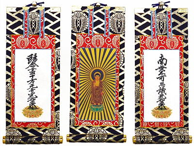 | 1212年に親鸞聖人が開いた草庵を起源とする浄土真宗の一派で、親鸞の弟子真仏、そしてその弟子了源の教えを直接受け継ぎます。 7世了源上人の時代に西日本で勢力を拡大し、阿弥陀佛光寺の寺号を賜り、1586年には豊臣秀吉の命で現在地に移転しました。 性別による差別なく女性も参画できる開かれた教団であり、本山が兵火で焼失した際には、真意尼公が再建を果たしました。 創始:1212年に親鸞聖人が山科に草庵を結んだのが起源とされていますが、真宗佛光寺派では親鸞の愛弟子の了源上人が中興の祖であると位置付けられています。了源上人の活躍:了源上人は教化活動の拠点とし、絵系図などを持ちいて西日本一帯に布教を広げました。この頃、光明本尊を用いたことでも知られ、真宗教団の中興の祖とされています。 寺号の授与:ご本尊が盗難に遭う事件が起きましたが、後醍醐天皇の夢に瑞光が現れたことで阿弥陀如来像が戻り、天皇から「阿弥陀佛光寺」の寺号が授けられました。 京都移転:了源上人の時代に現在の京都国立博物館のあたりに寺基を移転し、その後1586年に豊臣秀吉の命により、現在の京都市下京区の地に移転しました。 再建:江戸から明治への時代の激変期、元治の兵火で本山が焼失しましたが、当時の第二十七世真意尼公の尽力により再建され、現在の本山両堂などが完成しました。 開かれた教団:性別に関わらず教団護持に多くの女性が携わってきた歴史があり、開かれた教団としての特徴を持っています。 法灯の継承:親鸞聖人から真仏、了源、そしてその子孫へと法灯が受け継がれ、宗派として独自の教義や作法が発展しました。 脇掛について お仏壇の最上段、本尊である阿弥陀如来の両脇には、九字名号と十字名号をおまつりします。 右の脇掛(九字名号):「南無不可思議光如来」と書かれており、「私たち人間では思いもよらない(思議)大いなる仏様に帰依します」という意味です。 左の脇掛(十字名号):「帰命尽十方無碍光如来」と書かれており、「滞ることなく十方を照らし、どんな隅々の者までもお救いくださる仏様に帰依します」という意味です。 |