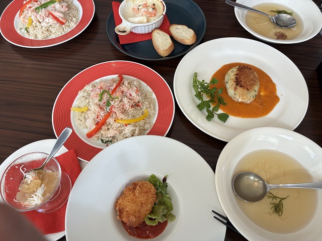 カニの旨みが詰まったピラフにカニ身がたっぷり盛られた贅沢な逸品