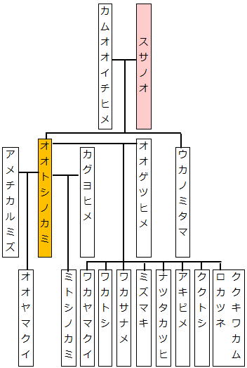 須佐之男命と神大市比売(かむおおいちひめ)の間に生まれた神で、多くの神々の子孫を持つとされています。