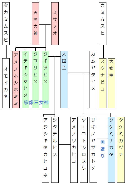 - 下照比売命(したてるひめのみこと):父は大国主命、 母は田心姫神(宗像三女神の長女) 兄弟は阿遅鉏高日子根神(あぢすきたかひこねのかみ/迦毛大御神)など。