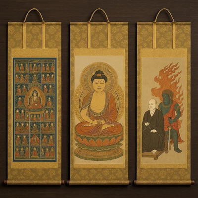 | 「戒律」、すなわち自発的に規律を守ろうとする心のはたらきを指す「戒」と、他律的な規則を指す「律」の研究と実践を主とする。 僧侶になりたい人は戒律に従い具足戒を受ける必要があるのですが、具足戒は男性の僧で250個、女性の僧では348個もの戒律が定められています。 中国の道宣によって成立し、鑑真によって日本に伝えられました。日本には奈良時代に「南都六宗」の一つとして伝わり、特に生活規律である戒律を守ることで悟りを開くことを目指します。 教えの特徴:他の宗派が経典や座禅を重視するのに対し、律宗は仏教の規則である「戒律」の探求と実践を重んじます。 悟りへの道:戒律を深く理解し、実践することで悟りが開かれると説いています。 大乗仏教:律宗は、自分だけでなくすべての人々が救われることを目指す大乗仏教の流れを汲んでいます。 鑑真の来日:鑑真が奈良の東大寺に戒壇を開き、聖武天皇などの保護を受けて多くの人々に受戒を行いました。唐招提寺の創建:759年には、律宗の総本山となる唐招提寺を創建しました。 鎌倉時代の復興:一時は衰退しましたが、平安末期から鎌倉時代にかけて、戒律の復興が図られ、特に西大寺流と唐招提寺流の二つの流れが全国に広まりました。 日常生活における戒律 僧侶には数百の戒律、在家信者には五戒(飲酒、色欲、殺生を避けるなど)が求められ、日常生活の中で戒律を守ることが奨励されます。 戒律を守ることは、個人の人格を高め、調和の取れた社会を作ることに繋がるとされています。 飾り方:中央に「ご本尊」である大日如来を配置し向かって左側に「両界曼荼羅」、右側に弘法大師と不動明王となる。 |