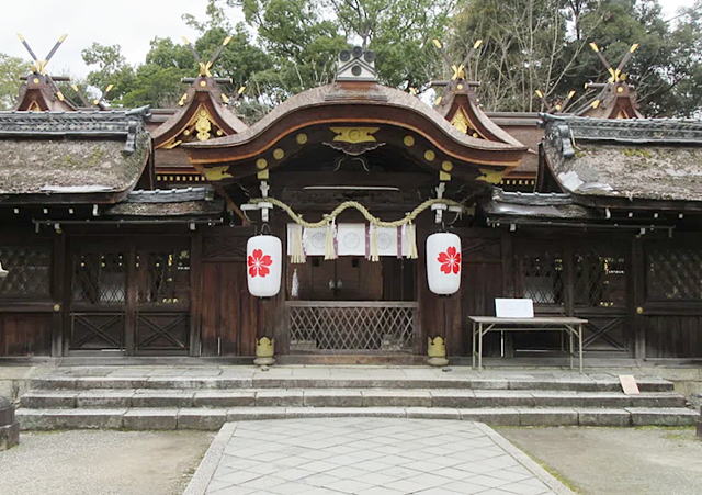 794年(延暦13)平安遷都の際、この地に遷座。朝廷も崇敬され、たびたび行幸。のち源氏、平家の氏神となる。現在の社殿は寛永年間(1624~44)の造営で平野造とよばれ本殿は重文。