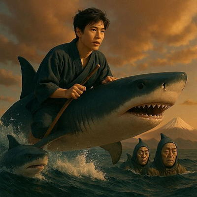そして、サメ達に誰が一番早く山幸彦を兄のところへ送れるか聞いて、一日で送れると言ったサメに山幸彦を乗せて地上の故郷に帰らせた。